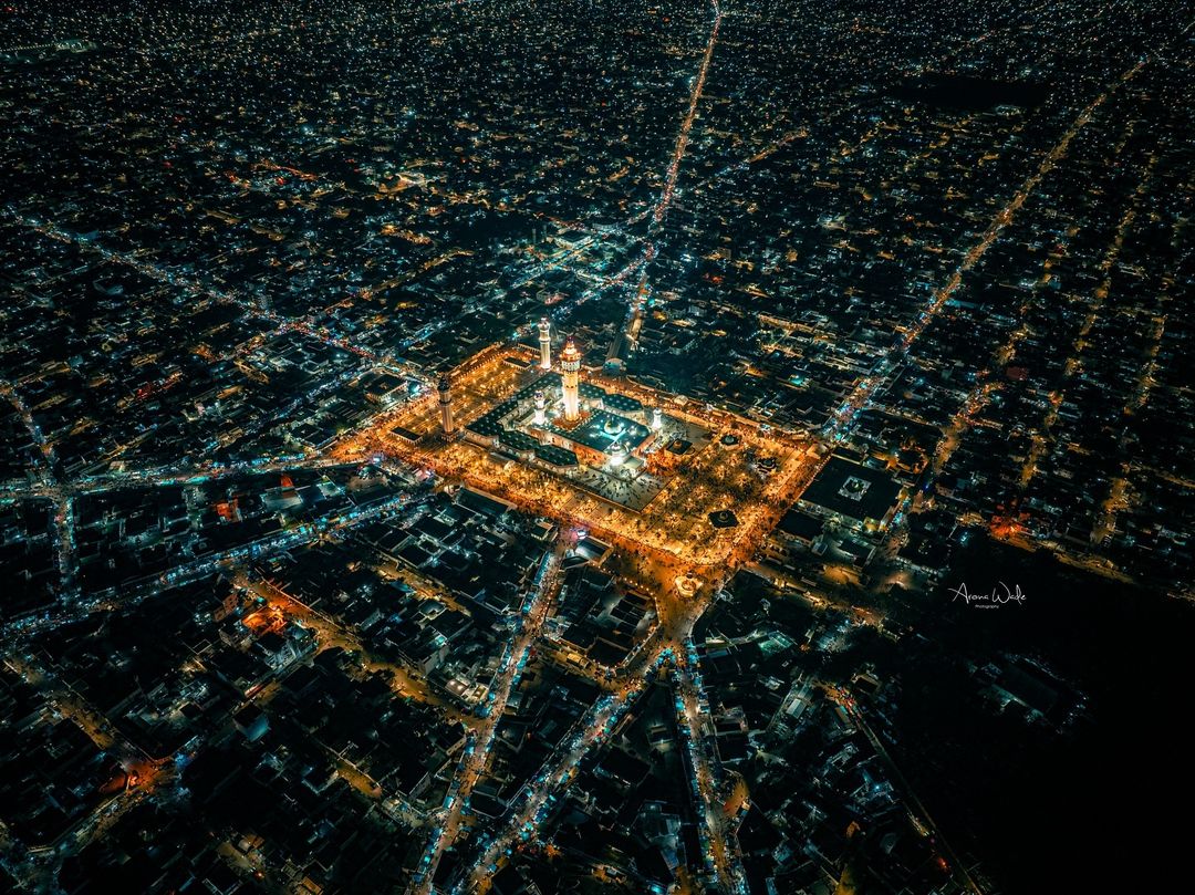 Enfin, l’observateur du schéma de la ville remarquera que la configuration radioconcentrique est régulièrement traversée à la médiane de la Mosquée par un diamètre qui joint à l’Ouest des villages de Sam et Dâru Khafour à la zone d’extension orientale sur un trajet rectiligne formant un angle de 180° sur l’axe de la Grande Mosquée.